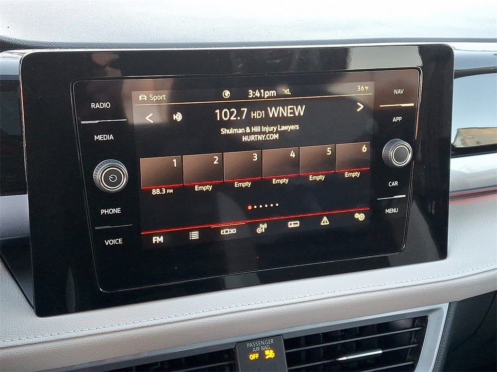 - Radio: MIB3 Discover Media AM/FM/HD -inc: 8" touchscreen navigation multifunction center display, WMA/MP3/FLAC player w/USB-C, voice control, capability for in-vehicle 4G LTE enabled Wi-Fi (cellular data plan required; includes limited trial), capability for VW Car-Net services (capabilities for certain services vary; requires enrollment or subscription), 6-speaker sound system, Bluetooth® connectivity (for compatible devices), SiriusXM w/360L (w/3-month free trial; 360L services require acceptance of Car-Net terms), App-Connect smartphone integration (w/Apple CarPlay, Android Auto and MirrorLink) via USB, wireless App-Connect smartphone integration (for compatible devices) w/multi-phone pairing capability, USB-C enhanced charging up to 45W (for compatible devices) and Qi wireless inductive charger (for compatible mobile phones and accessories) All VW Car-Net services subject to terms & limitations. Some services require a paid subscription. See dealer or vw.com/carnet for details.