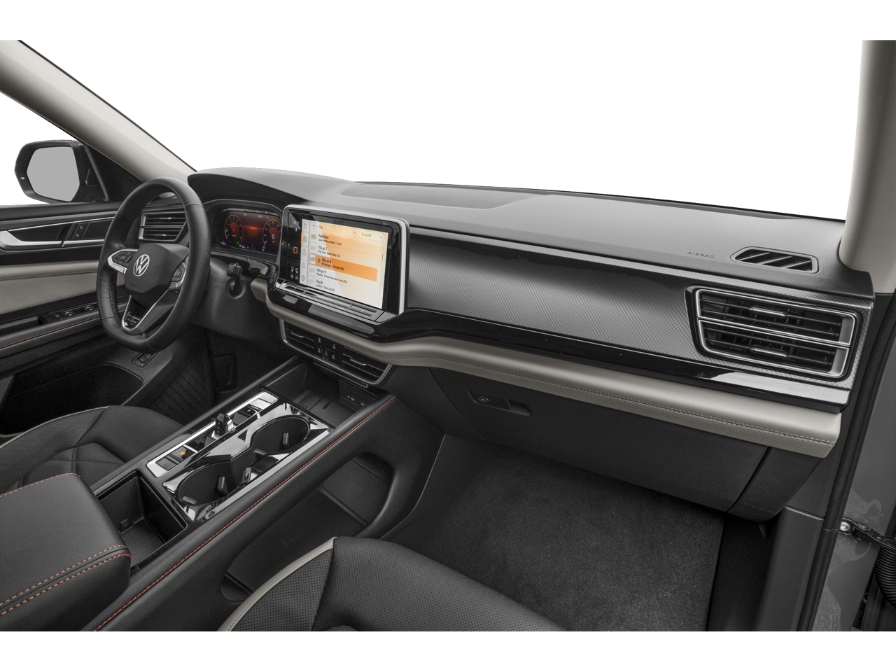 - MIB3 Composition Media -inc: 12" touchscreen multi-function center display, AM/FM/HD radio and WMA/MP3/FLAC player w/USB-C input, voice control, SiriusXM w/360L (w/3-month free trial subscription; 360L services require acceptance of SiriusXM terms), 6-speaker sound system, Bluetooth® connectivity (for compatible devices), capability for in-vehicle 4G LTE enabled Wi-Fi (cellular data plan required; includes limited trial), capability for connected vehicle services (capabilities for services vary; requires enrollment or subscription), App-Connect smartphone integration (w/Apple CarPlay, Android Auto and MirrorLink) via USB, wireless App-Connect smartphone integration (for compatible devices) w/multi-phone pairing capability and Qi wireless inductive charger up to 15W (for compatible mobile phones and accessories) in front row All connected vehicle services subject to terms and limitations. Some services, which include emergency assistance services, require a paid subscription. See dealer or vw.com/connected for important details.