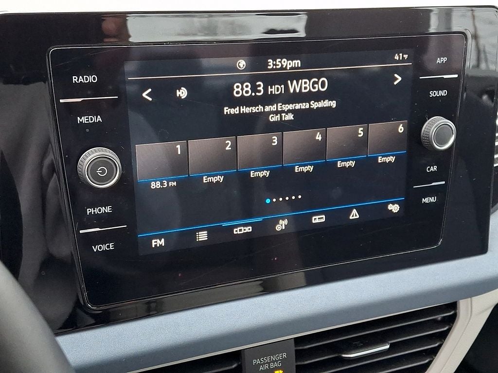 - Radio: MIB3 Composition Media w/8" Touchscreen -inc: AM/FM/HD Radio and WMA/MP3/FLAC player w/USB-C, voice control, Bluetooth® connectivity (for compatible devices), SiriusXM w/360L (w/3-month trial subscription; 360L services require acceptance of Car-Net terms), capability for in-vehicle 4G LTE enabled Wi-Fi (cellular data plan required; includes limited trial), capability for VW Car-Net services (capabilities for certain services vary; requires enrollment or subscription), App-Connect smartphone integration (w/Apple CarPlay, Android Auto and MirrorLink) via USB, wireless App-Connect smartphone integration (for compatible devices) w/multi-phone pairing capability, USB-C enhanced charging, up to 45W (for compatible devices), Qi wireless inductive charger (for compatible mobile phones & accessories) and 6-speaker sound system, All VW Car-Net services subject to terms and limitations, Some services, which include emergency assistance services, require a paid subscription, See dealer or vw.com/carnet for details