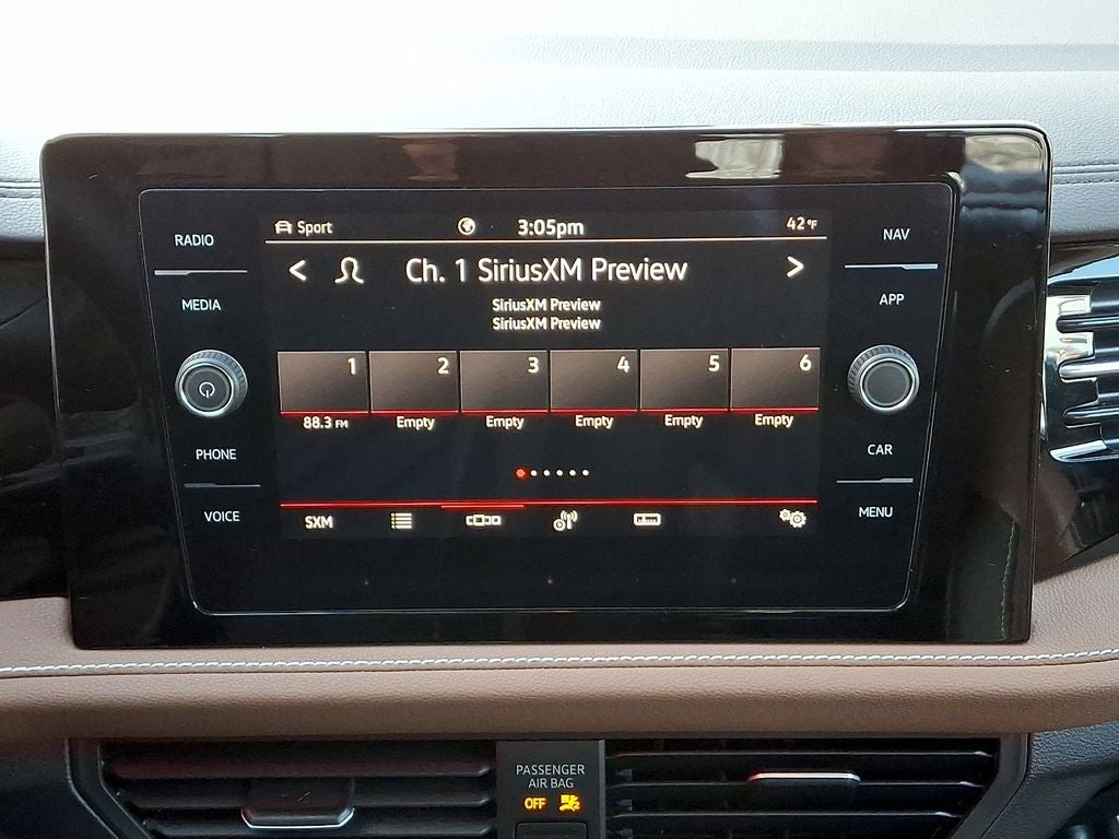 - Radio: MIB3 Discover Media w/8" Touchscreen Nav -inc: AM/FM/HD Radio and WMA/MP3/FLAC player w/USB-C, voice control, Bluetooth® connectivity (for compatible devices), SiriusXM w/360L (w/3-month trial subscription; 360L services require acceptance of Car-Net terms), capability for in-vehicle 4G LTE enabled Wi-Fi (cellular data plan required; includes limited trial), capability for VW Car-Net services (capabilities for certain services vary; requires enrollment or subscription), App-Connect smartphone integration (w/Apple CarPlay, Android Auto and MirrorLink) via USB, wireless App-Connect smartphone integration (for compatible devices) w/multi-phone pairing capability, USB-C enhanced charging, up to 45W (for compatible devices) and Qi wireless inductive charger (for compatible mobile phones & accessories)