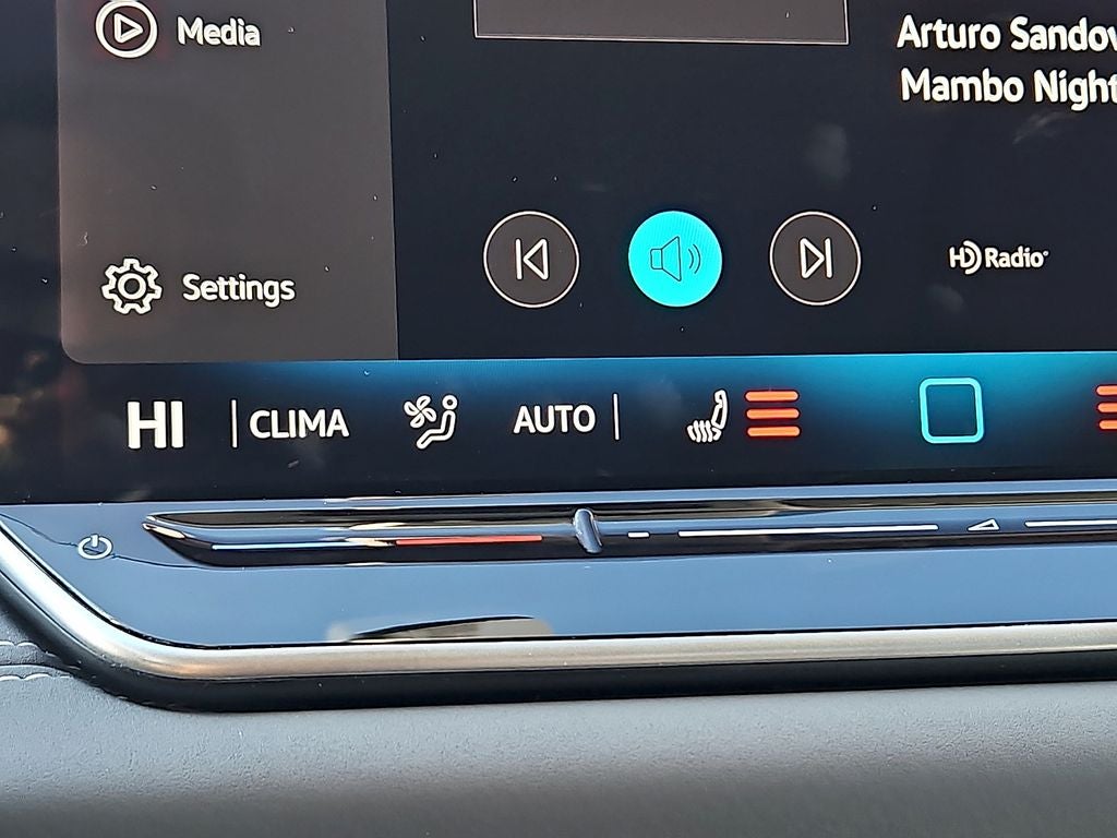 - Radio: MIB4 Composition Media Touchscreen AM/FM -inc: WMA/MP3/FLAC player w/USB, 12.9" touchscreen multi-function center display w/backlit sliders, voice control, 6 speakers + center speaker (7 speakers total) sound system, capability for in-vehicle 4G LTE enabled Wi-Fi (cellular data plan required; includes limited trial), capability for VW Car-Net services (capabilities for services vary; requires enrollment or subscription), Bluetooth® connectivity (for compatible devices), SiriusXM w/360L (w/3-month free trial subscription; 360L services require acceptance of Car-Net terms), App-Connect smartphone integration (w/Apple CarPlay, Android Auto and MirrorLink) via USB, wireless App-Connect smartphone integration (for compatible devices) w/multi-phone pairing capability, 45W fast charging (for compatible mobile phones and accessories) via USB in both rows and Qi wireless inductive charger, cooled, up to 15W (for compatible mobile phones and accessories)